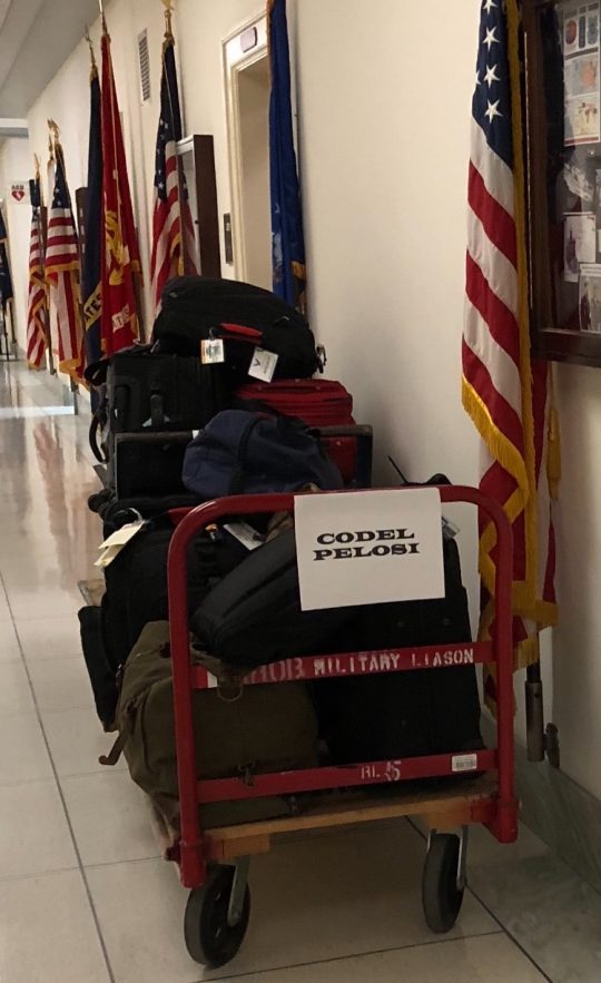 Speaker of the House Nancy Pelosi’s luggage has been returned to her congressional office by cart, according to a picture sent to the Washington Free Beacon by a snap-happy tipster.