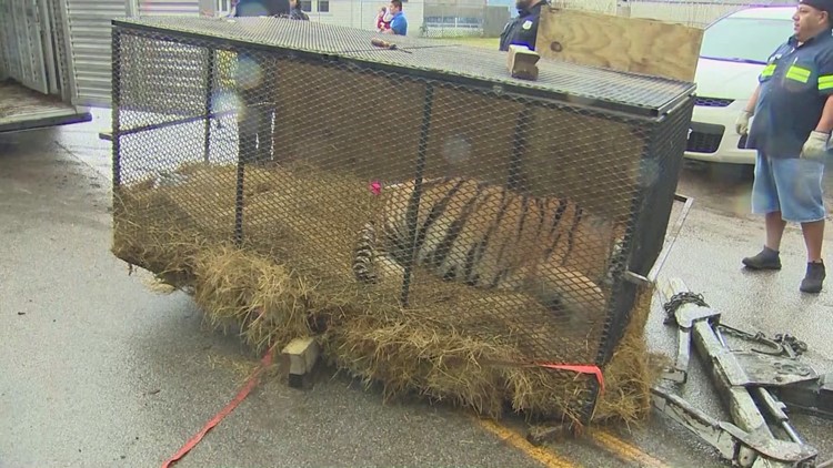 Officials said a couple of people who went into the abandoned home to smoke marijuana called 311 when they found the tiger. 311 officials transferred the call to BARC Animal Shelter who got a warrant from Houston police to search the home in the 9400 block of East Avenue J.