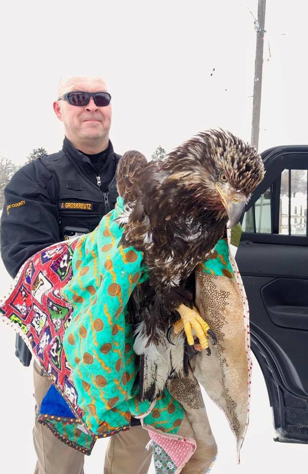 When Deputy Jay Groskreutz spotted an eagle on the side of the road while patrolling Wednesday, he told Deputy Steven Horn to turn around. Something seemed off about the bird.